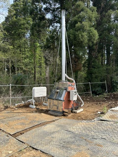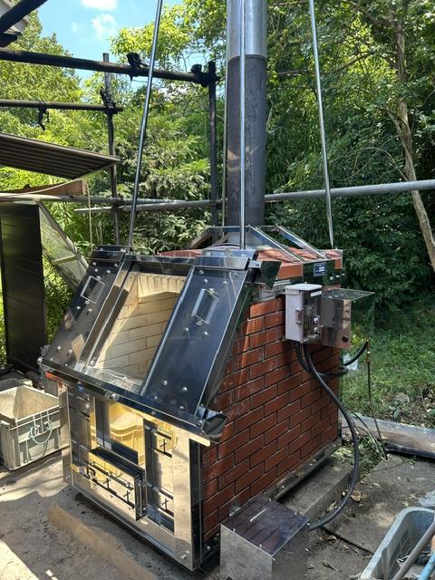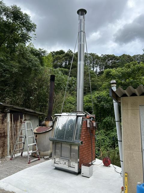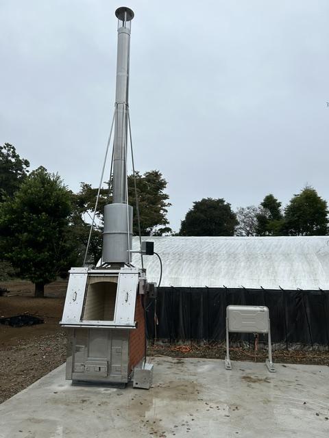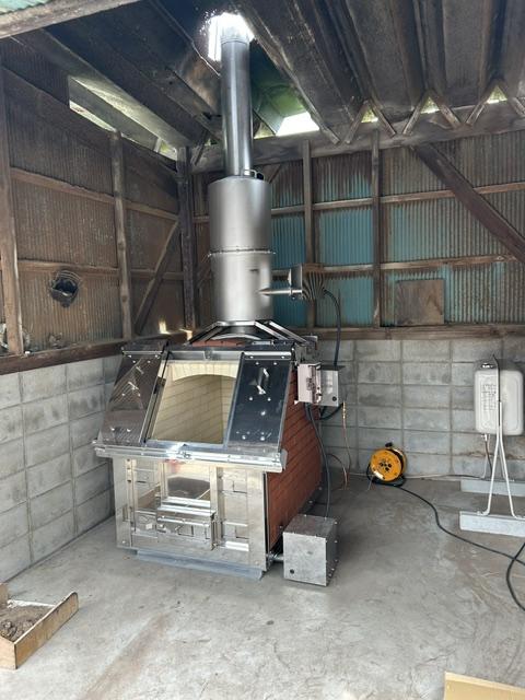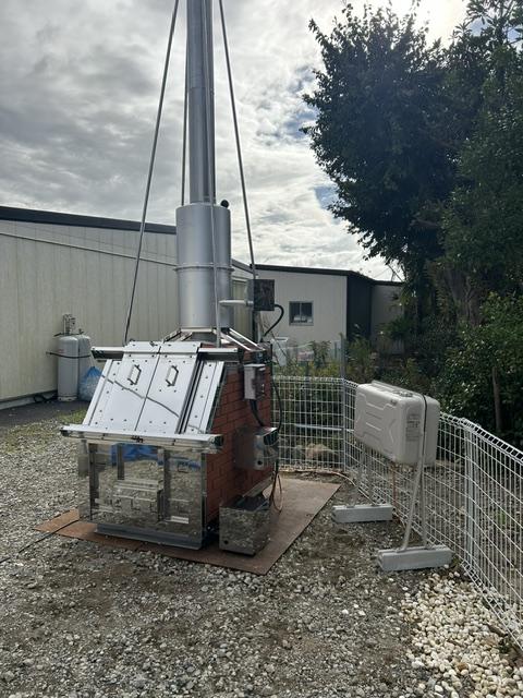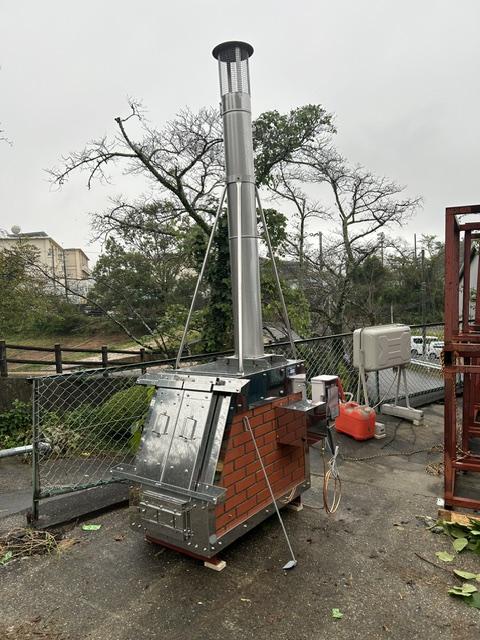 奥に見える火は助燃装置であるバーナーから出ているもので、着火用に使用することも可能です
